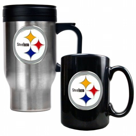 Buy Now! NFL Pittsburgh Steelers Travel Mug & Ceramic Mug Set - Primary Logo